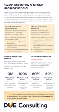 Obszar dedykowany przedsiębiorstwom specjalizującym się w przetwórstwie produktów pochodzących z rolnictwa ekologicznego. Program wspiera:
